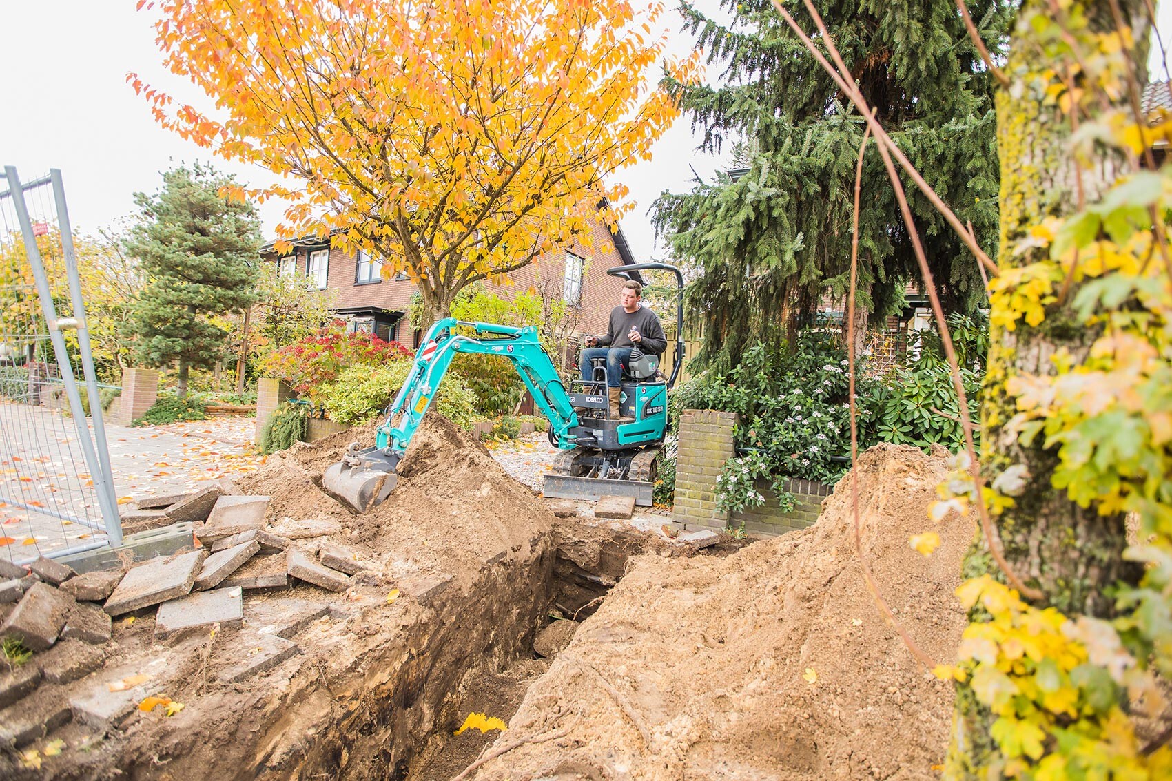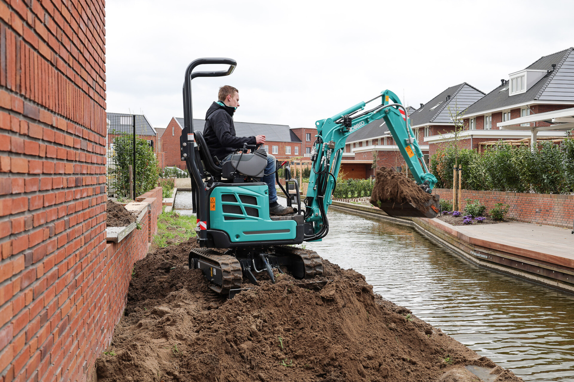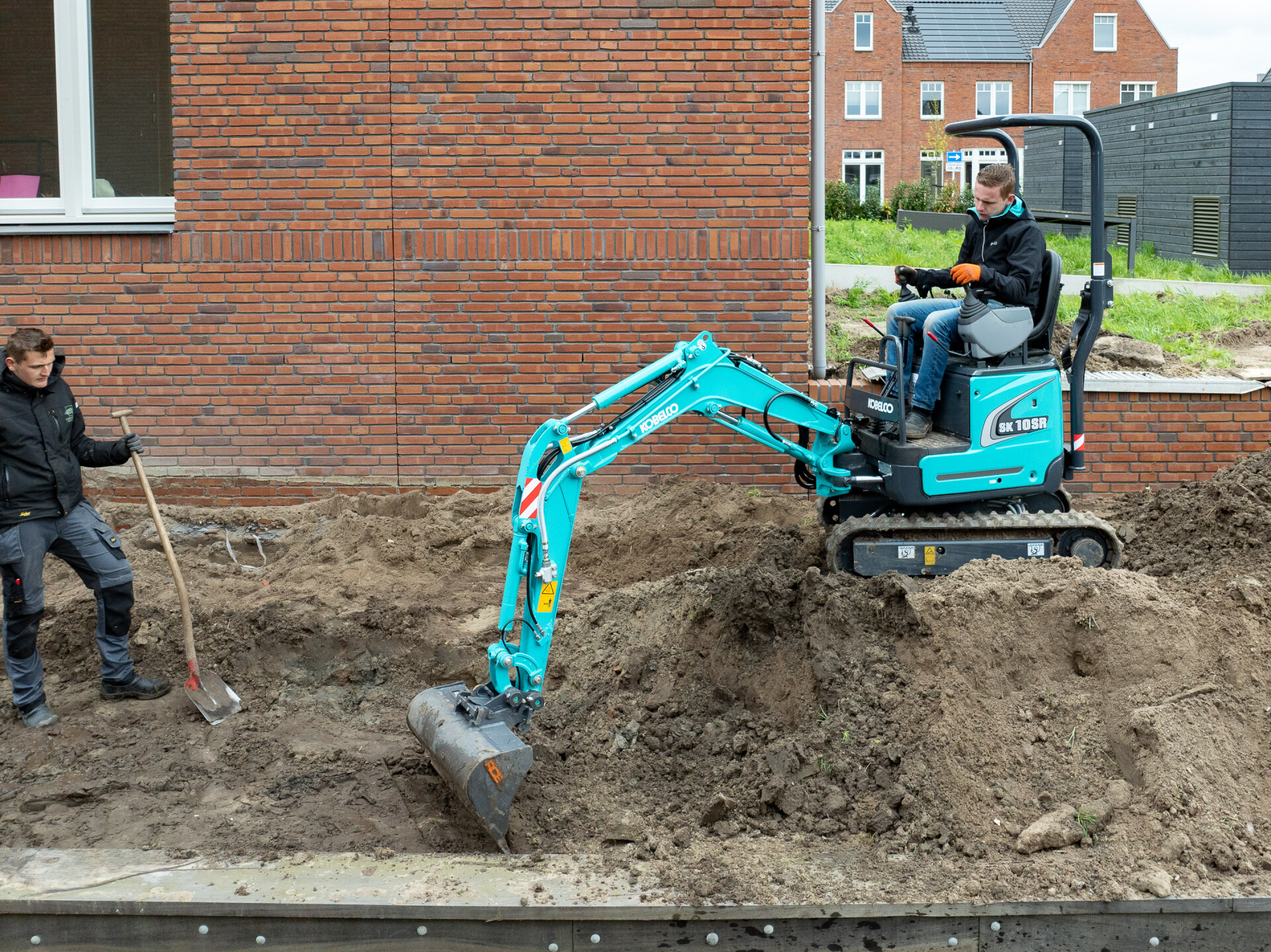 De Kobelco SK10SR-2E minigraver is perfect voor graafwerkzaamheden in een tuin, voorbereidende werkzaamheden voor bestrating, kabellegging en werkzaamheden op plaatsen met beperkte ruimte. Deze minigraafmachine met joystickbediening is krachtig en door de uitschuifbare onderwagen compact en stabiel tegelijk.